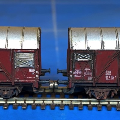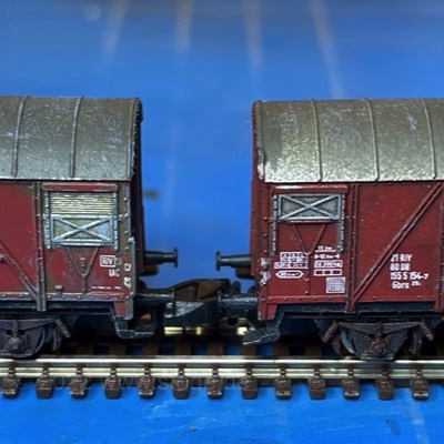 Die Bausatzwagen wurden gleich beim Zusammensetzen gesupert: Zettelkästen, Rangiertritte, Aufstiegsleitern... Dann ging es mit anderen Wagen weiter.